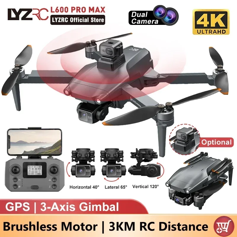 LYZRC L600 PRO MAX GPS Drone 4K HD Dual Camera Professional Dron Three-Axis PTZ Laser Obstacle Avoidance Brushless Motor 5G WIFI FPV RC Quadcopter Toys